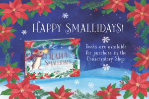 The partnership includes the donation of twenty copies of “Happy Smallidays” to the Allen County Public Library’s collection. Any ACPL patrons who borrow one of the Library’s copies and bring it along to the Botanical Conservatory will receive complimentary admission for up to four people. The promotion and exhibit will run from November 19, 2022, through January 8, 2023.